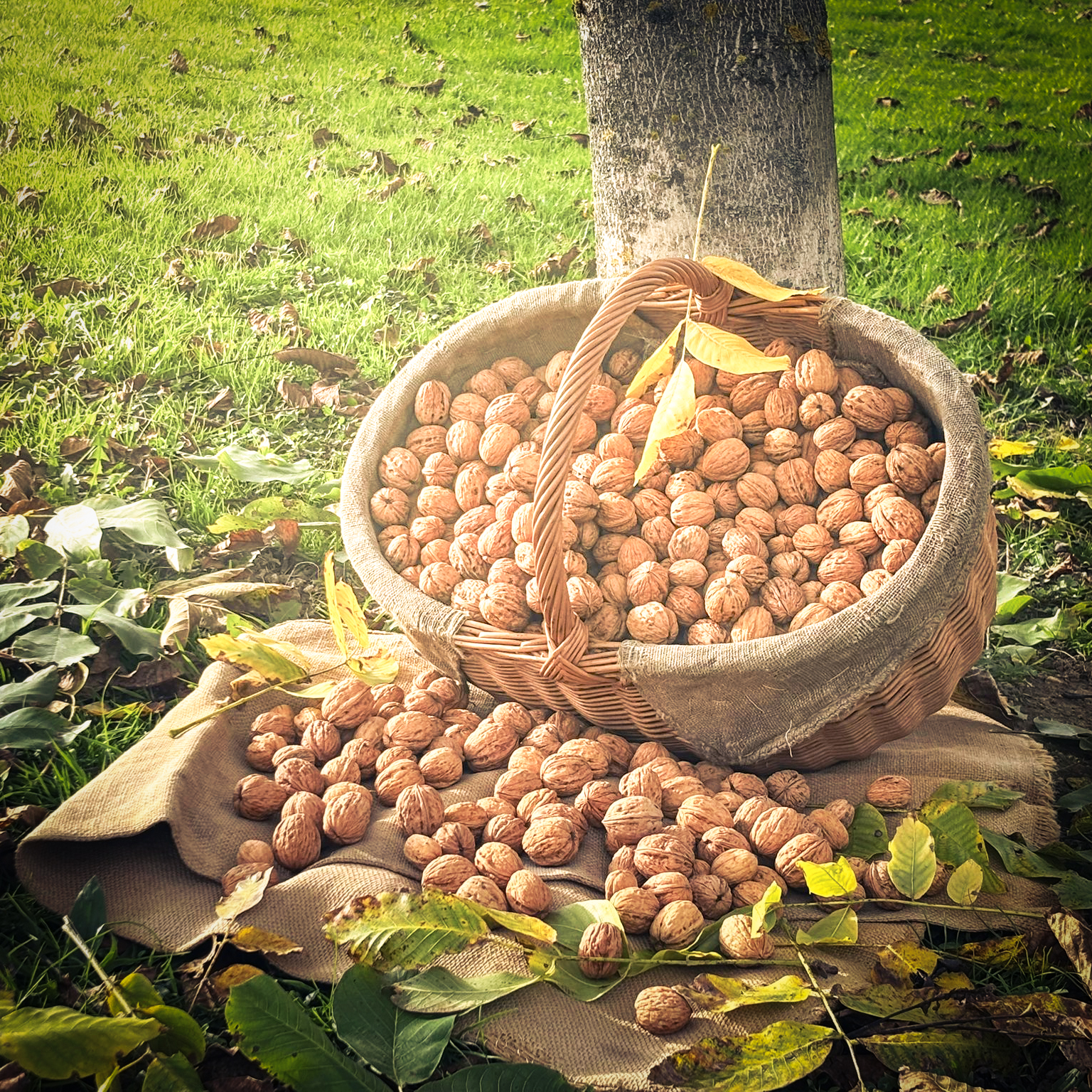 Ein Korb voller regionaler Walnüsse von Walnussprodukte Alexander Stoll