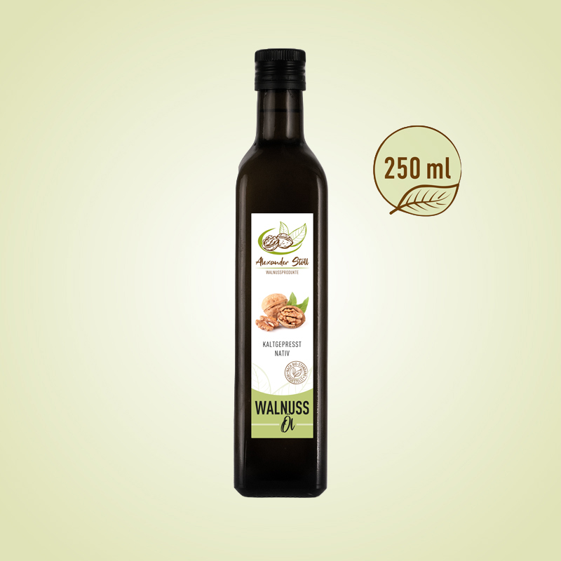 Walnut oil is suitable for both cold and hot dishes. Due to its high content of polyunsaturated fatty acids, it should not be used for frying. This cooking oil has a low smoke point and should not be heated to high temperatures, a maximum of 160 degrees Celsius (320 degrees Fahrenheit). Because of its high-quality components, walnut oil is very sensitive. It must be stored in a cool, dark place.